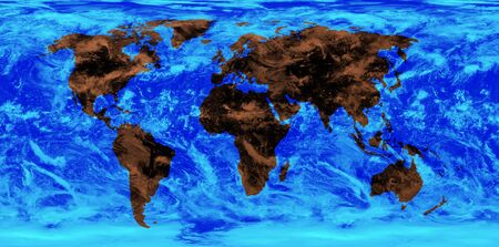World map of the brown continent and blue planet Earth with clouds showing all countries and continents of the globe.