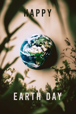 Abstract Earth Day Poster Concept. Earth in the forest background with Sign. Happy Earth Day. Generative Ai.
