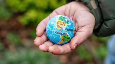 A vibrant globe held in a hand symbolizes global awareness and commitment to protecting the environment, showcasing the beauty of our planet.