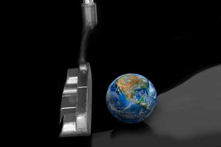 Planet Earth in a burnt hole. Environmental pollution. Global warming.