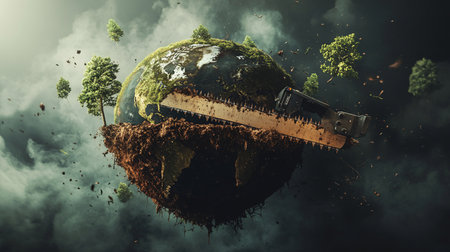 Ecology concept. Planet earth with saw blade. 3D rendering
