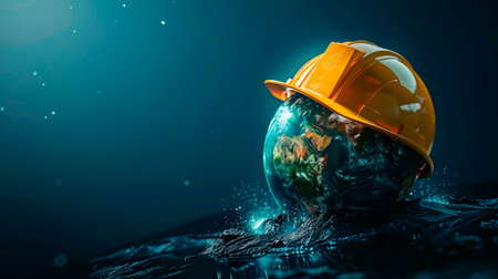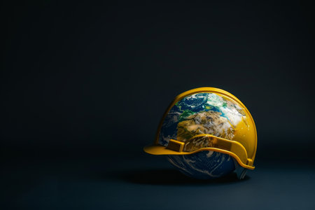 Global safety symbol earth and helmet for workplace safety on world day of safety and health