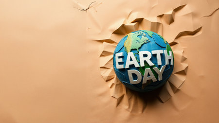 This image features a small globe resting in soil, with a seedling growing beside it. A sign reads Earth Day, symbolizing environmental awareness and conservation efforts.