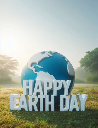 Happy Earth Day Illustration: Planet and letters on the grass.generative ai