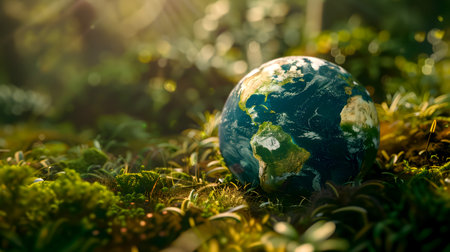 Celebrate Earth Day with a vibrant globe nestled on lush green moss, symbolizing nature's beauty and the importance of environmental protection in our lives.