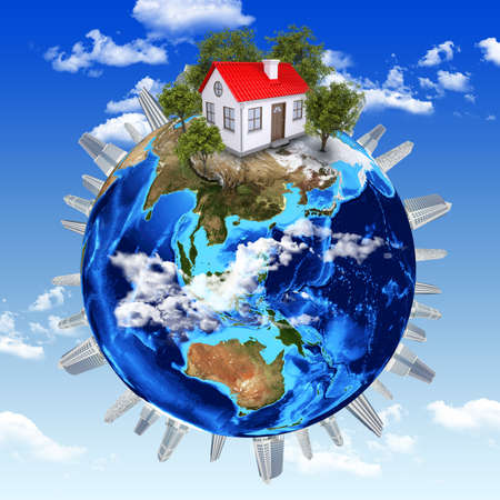 House on the planet Earth. 3D rendering. Elements of this image furnished by NASA