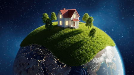 House on earth. Real estate concept. Elements of this image furnished by NASA