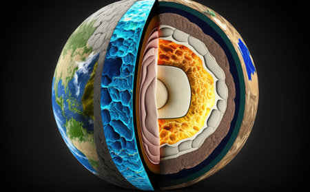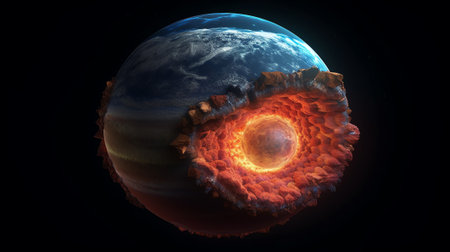 Generative AI : Earth core structure Elements of this image furnished by NASA