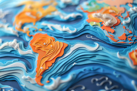 Create a detailed paper cut artwork of Earth s atmosphere and weather patterns, emphasizing the dynamic and life sustaining aspects of our home planet.