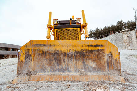 Bulldozer working on a construction site. Heavy duty construction equipment.