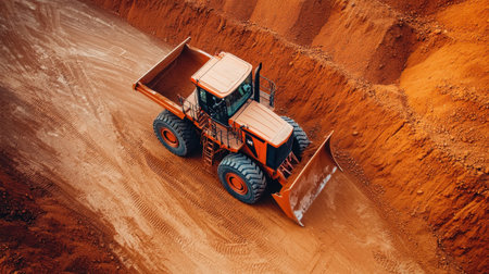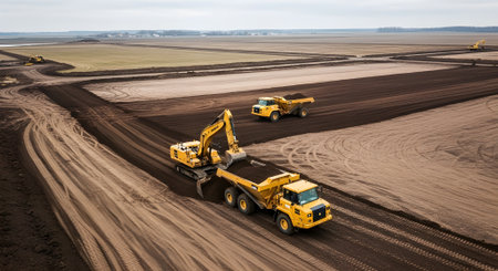surface mining operation, with massive earthmoving equipment moving dirt and rock, created with generative ai