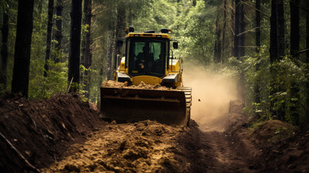 clearing bulldozer trees illustration path construction, development powerful, dense brush clearing bulldozer trees