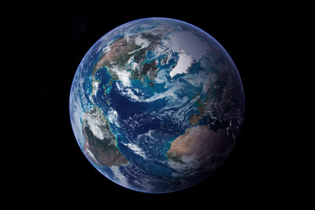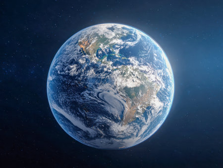 A breathtaking perspective of Earth from space highlighting the vibrant continents of North and South America, swirling cloud patterns, and sparkling ocean currents