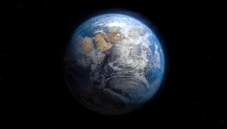 High resolution 3D rendering of planet Earth with atmospheric glow effect. Image is centered on Europe and Africa. Textures NASA.