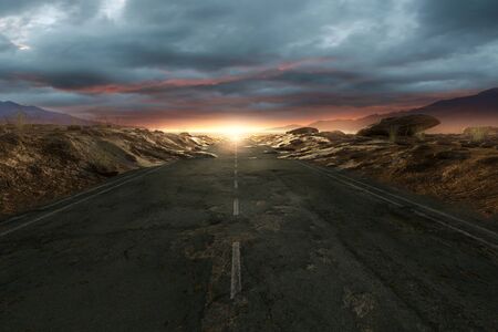 Road in the mountains at sunset. Travel and adventure concept photo.