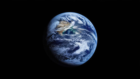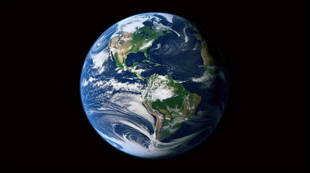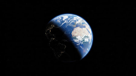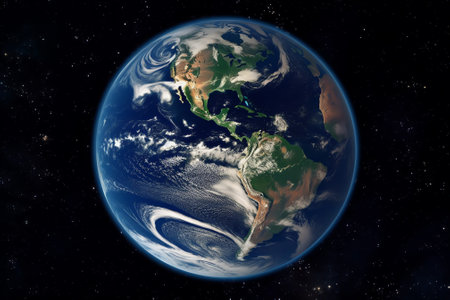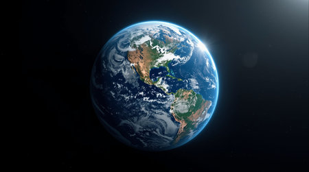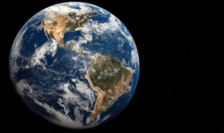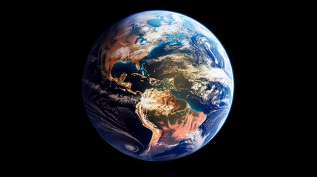 Stunning view of planet Earth from outer space with vast dark background. Highlighting the beauty and isolation of our planet.