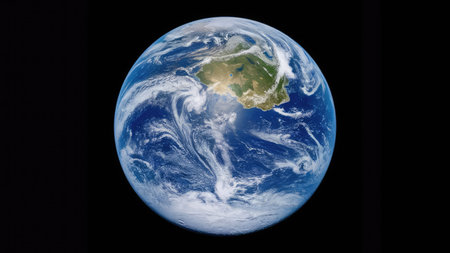 Captivating view of Earth from space showcasing its vibrant blue oceans and swirling clouds. A breathtaking representation of our planet's beauty and fragility.