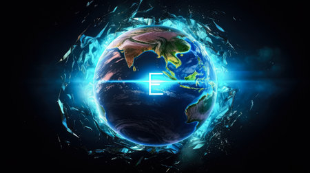 This stunning image depicts the Earth in a dramatic state of fragmentation, highlighting the urgent issues of environmental degradation and climate change.