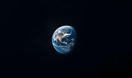 Captivating view of Earth from space showcasing its vibrant blue oceans and swirling clouds. A breathtaking representation of our planet's beauty and fragility.