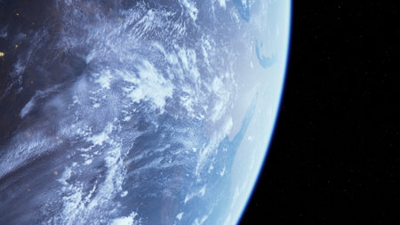 A breathtaking view of Earth from space reveals the beauty of natural landscapes and twinkling city lights. The image displays the planets diverse features, from mountains to oceans.