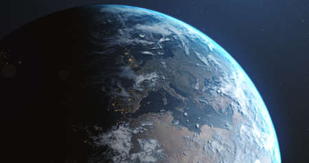 View of planet Earth Atlantic Ocean in space with her atmosphere 3D rendering elements