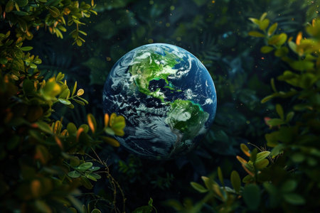 Captivating image of earth floating serenely among lush green leaves, symbolizing nature and environmental care