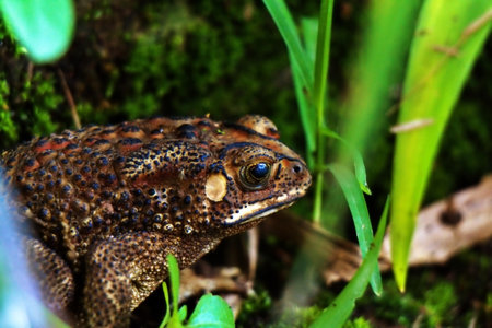 Toad Face portrait of large amphibian in the nature habitat. Animal in the tropic forest. Wildlife scene from nature.