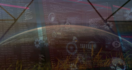 Image of data processing over globe. Global business and digital interface concept digitally generated image.