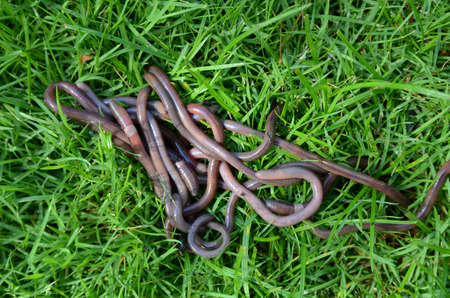Groups of earthworm African Night Crawler on the ground