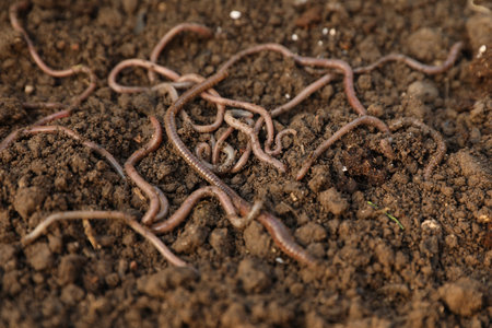 Earthworms on soil, earthworms on ground for agriculture and gardening concept with earthworms
