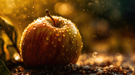 Delicious Apple Drops Dancing in Bokeh Rain. Generative AI