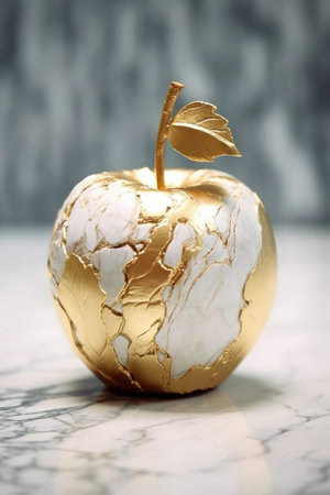 Art piece made of gold and marble apple. - image generated with Generative AI