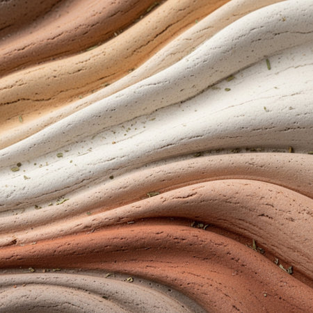 Organic clay color palette with natural pigment layers in warm beige and terracotta tones.