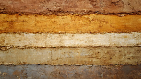 This image showcases a detailed cross-section of earth layers, illustrating various soil textures and colors ideal for geological studies and environmental education.