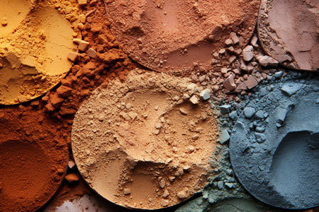 Macro texture of colorful crushed eye shadows, close up. AI generated.