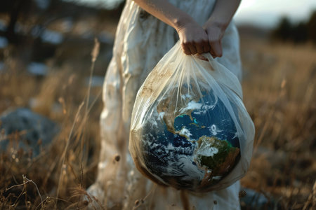 The picture of the person that has been holding the earth globe that come with the plastic bag that can stand for multiple meaning like protect the earth or keep the earth from plastic bag. AIGX01.