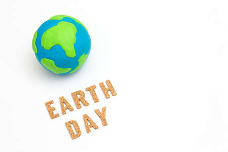 Globe ,earth made from clay and letter earth day on white background with copy space. Concept Save green planet. Earth day holiday concept