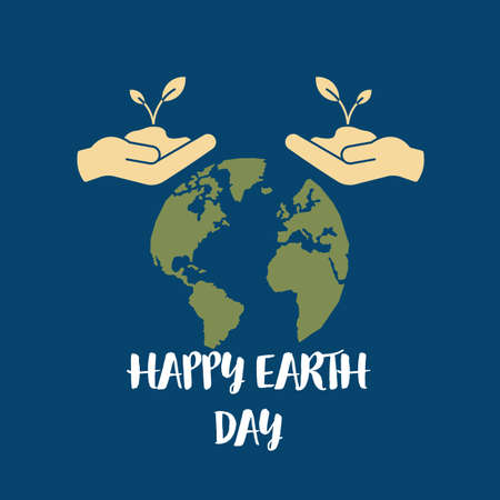 Illustration of plant and earth icon with text HAPPY EARTH DAY