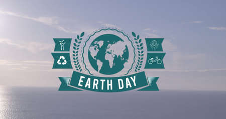 Image of earth day text over globe and sea. global environment, green energy and digital interface concept digitally generated image.