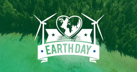 Image of earth day text over landscape. global environment, green energy and digital interface concept digitally generated image.