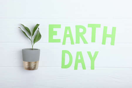 World earth day concept. Lettering Earth day with plants and wonderful flowers