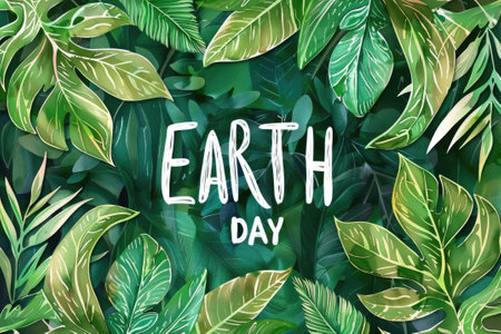 Earth day written amid green tropical leaves in watercolor style