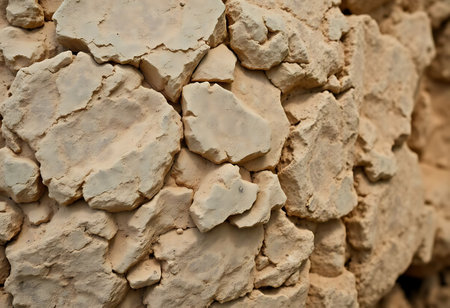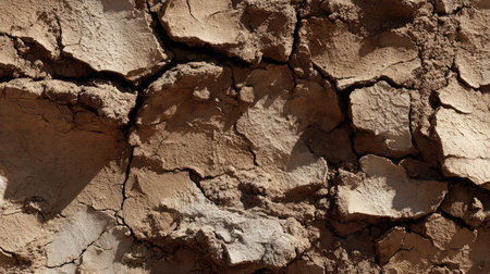 Natural desert pattern created by dried and split mud layers exposed under scorching sunlight