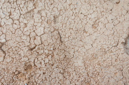 Detail of cracked and dry sand due to lack of water.