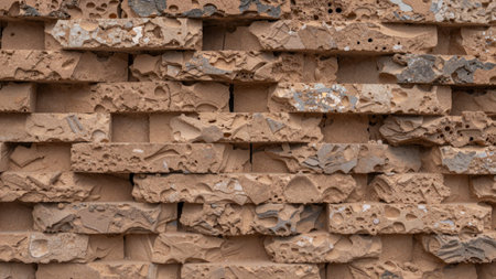 Abstract background, old clay brick wall close-up.