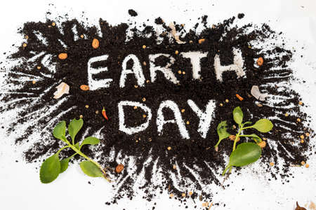 earth day concept, earth day word writing on chalkboard with nature seeds