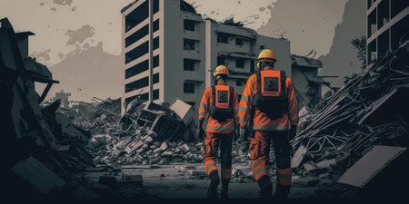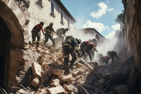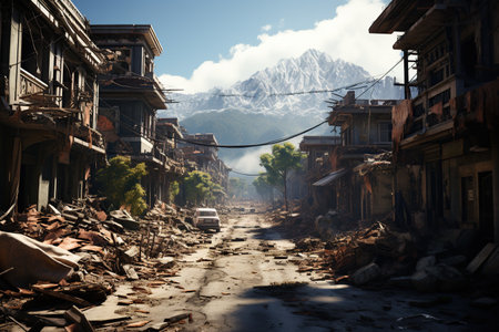 In a city left in ruins, emergency responders navigate debris-laden streets. Cracked pavement and damaged buildings reveal the harsh reality of the natural disaster. Hope rises amidst disaster.