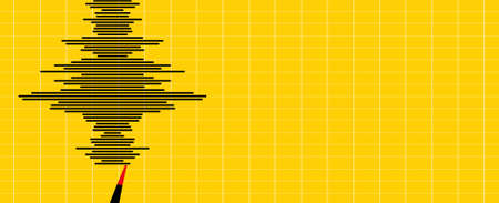 Seismological device for measuring earthquakes. Seismological activity live on the sheet of measuring paper.