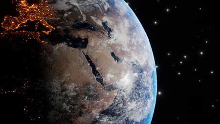 Night view of the planet Earth from space. 3D rendering.