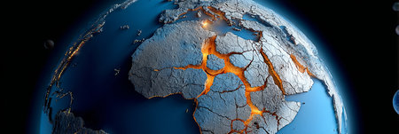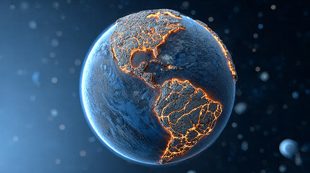 Stunning Digital Art of Blue Planet Earth with Orange Cracks in Space, Highlighting Global Crisis